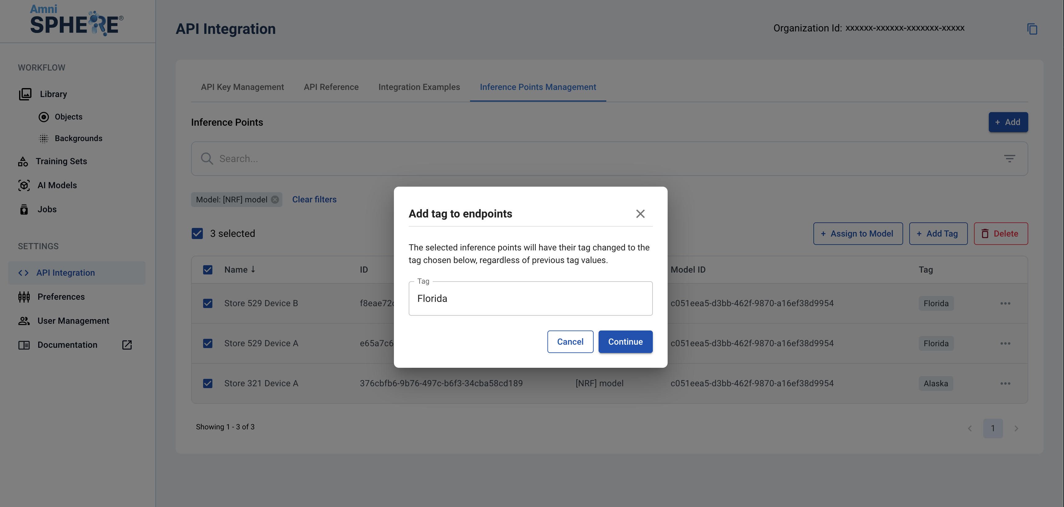 To easily group and filter inference points that may use similar AI models, we recommend using the same tag value. Tag values can be a common location, device type, background, or whatever else you’d like!