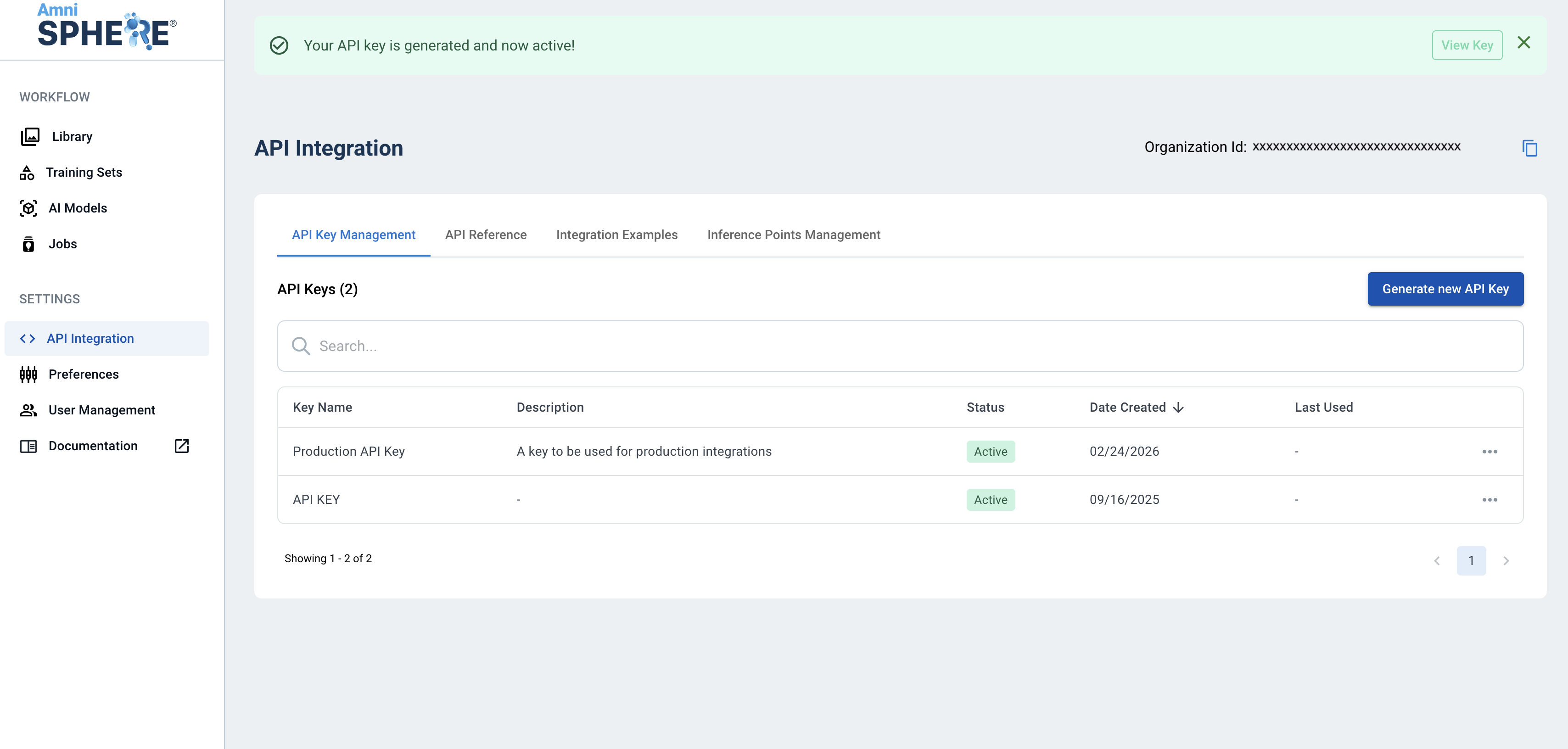 It may take a few minutes to generate your new key and register it across our platform. Once your key is successfully generated, a notification will appear with the option to view your newly generated key.