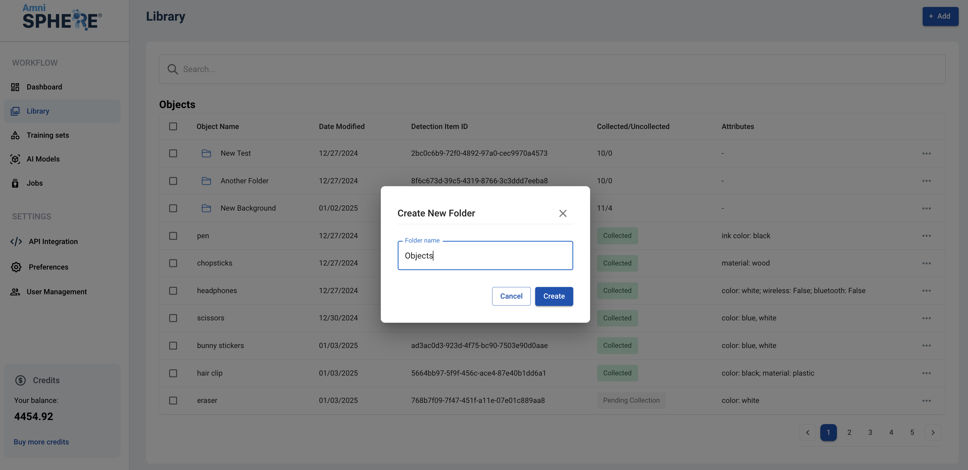 AmniSphere Library ManagementHow to Create a Folder on AmniSphere WebCopy page1Navigate to the Library tabAfter logging in using your Amniscient credentials, navigate to the Library tab. In this tab you can view, create, and edit folders.2Create New FolderClick on the “Add” button in the upper right corner and select “Add New Folder” from the dropdown.3Name FolderA popup will appear on screen prompting you to enter a name for your new folder. Enter a name for your folder and click on the “Create” button. If you’d like to cancel the creation of your folder instead, click on the “Cancel” button.