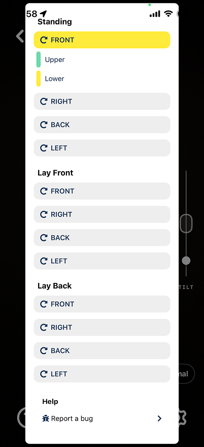 The tilt slider on the right side of your screen and the text in the middle of the screen are there to guide you to the correct angle for each frame of collection. The tilt slider will remain gray while you are outside of the correct collection angle, and will turn green once you reach the correct collection angle.