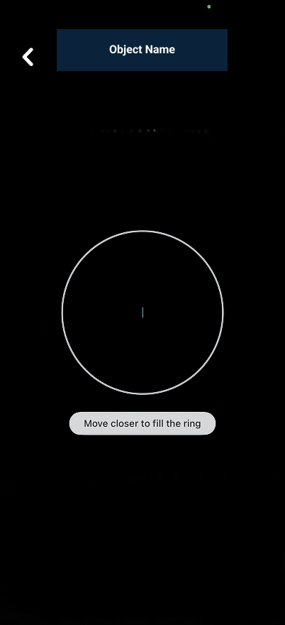 The circle in the middle of your screen and the text below it are there to guide you to the correct distance for each frame of collection. Aim to fill as much of the circle as possible with your object without cropping any part of it.