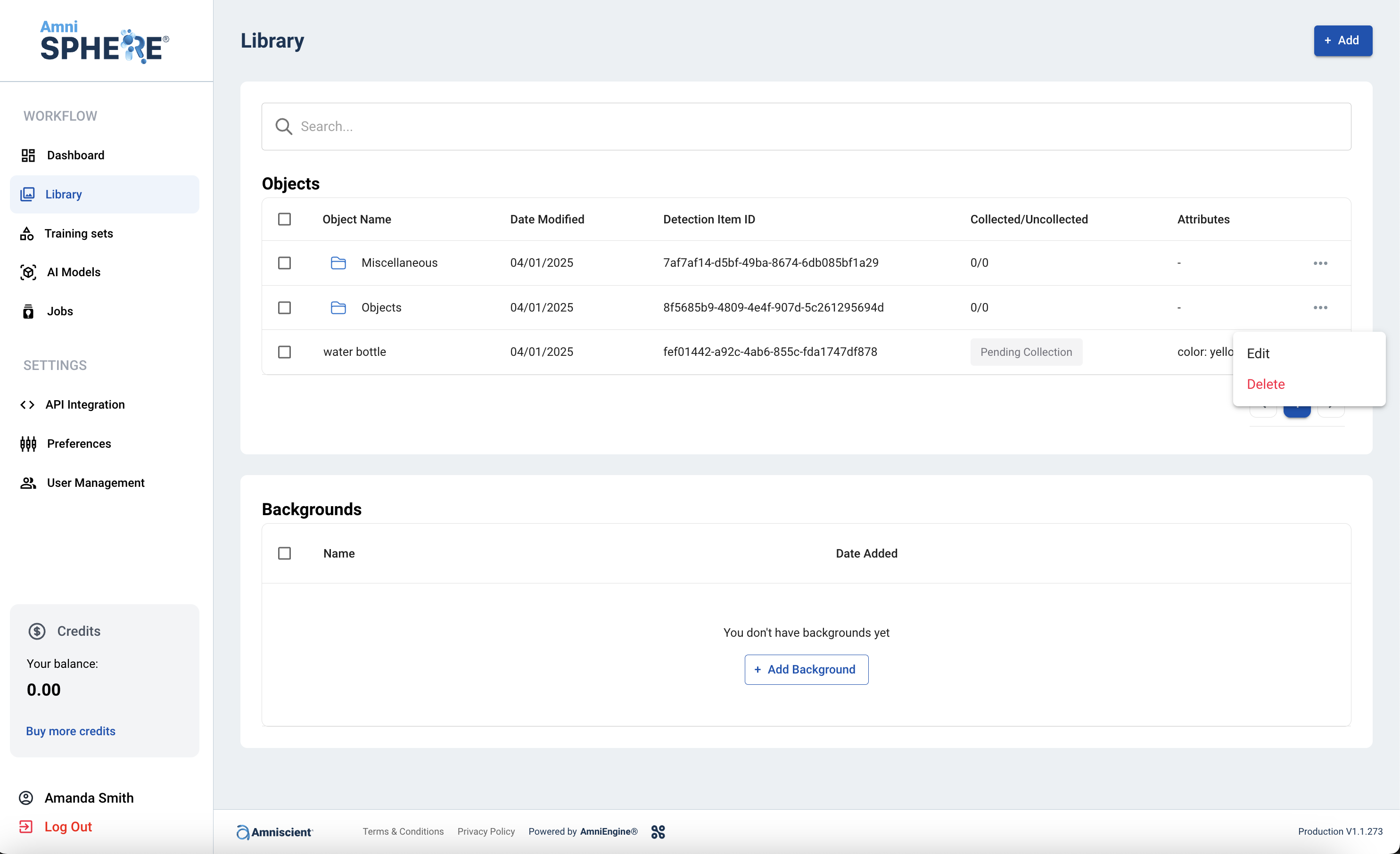 A popup will appear to confirm that you’d like to delete the folder. Click on the “Delete” button to delete your folder or click on the “Cancel” button if you’d like to cancel deleting your folders. Your folder will be permanently deleted immediately upon clicking delete, and will no longer be available on the AmniSphere website or within the mobile app.